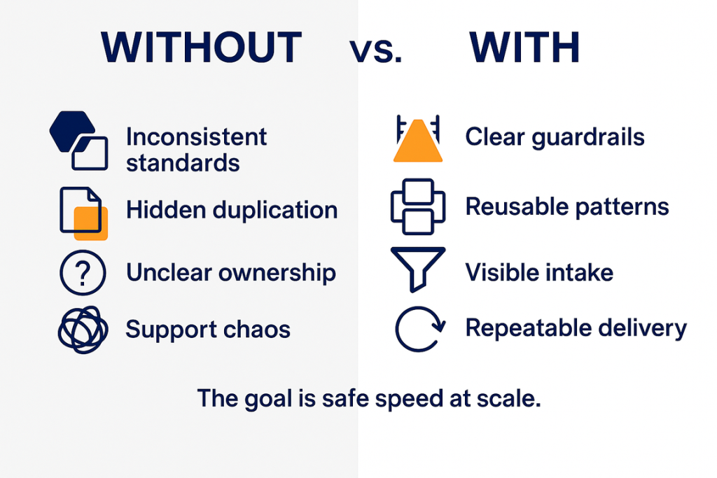 A Power Platform center of excellence is not about control. It is about repeatable delivery at scale.